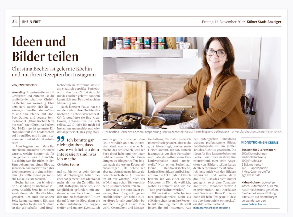 Und dann saß ich zuhause mit einer Redakteurin vom Kölner Stadtanzeiger und erzählte und erzählte. 🙂 Was letztendlich abgedruckt wurde, wusste ich im Vorfeld nicht. Innerhalb von nicht mal 2 Tagen erschien der Beitrag im Kölner Stadtanzeiger. Eine halbe Seite mit einer aufläge von über 40.000 Stück. Der Wahnsinn. Ich bin mehr als zufrieden mit dem Beitrag, weil ich mich ihn jedem Satz wiederfinde und sie es wirklich schön zusammengefasst hat.